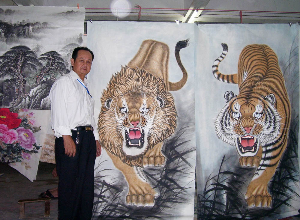 Tang Liang Long, was born in March of 1958 in Guilin, Guangxi province. He is a senior artists, especially drew lions and tigers for more than ten years. In guilin local he is known as "the king of tigers".His painting style is distinctive. His Gongbi paintings with the subject of tigers were especially impressive. The tigers in hisb paintings had vivid facial expression, lifelike spirit, and tiger’s prestige. It broke through the traditional Chinese Gongbi painting techniques. Especially the details of the tiger’s eyes were deep and with great prestige.