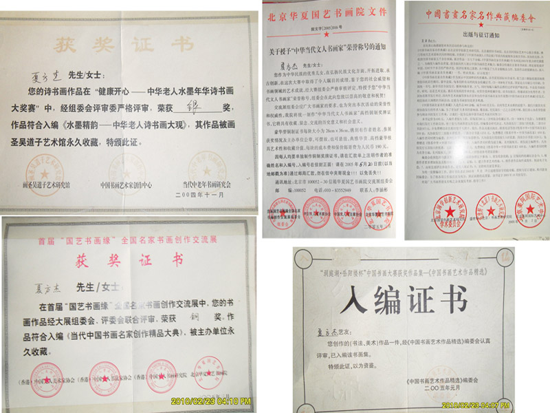One of his landscape painting won the silver prize in “Dong Ting Lake-Yueyang Tower Cup” Calligraphy and Painting Competition.