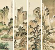 Chinese Four Screens of Landscapes Painting / Four Seasons Chinese Painting