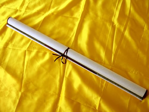 (For those paintings with sizes of the short side over 100cm/39inches, we specially pack them using a kind of tube particularly used for architecture purpose. It's tough enough for a man standing above it and jumping. It's definitely safe for long and large paintings.)