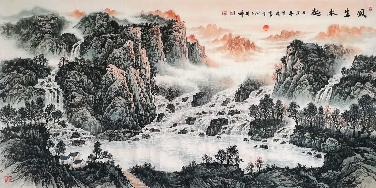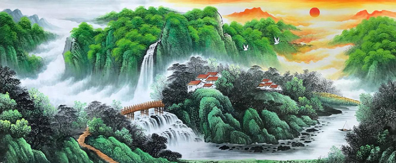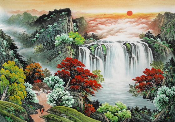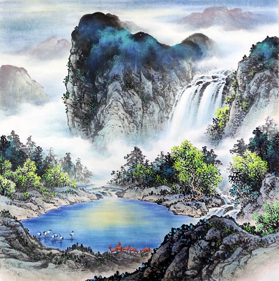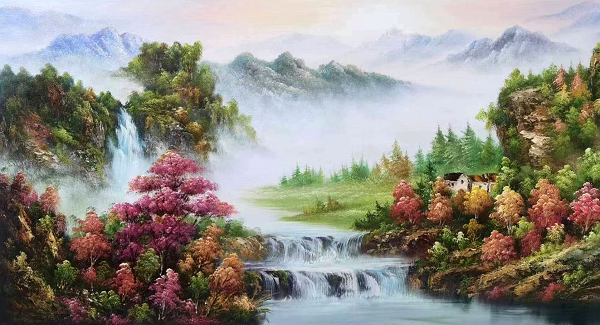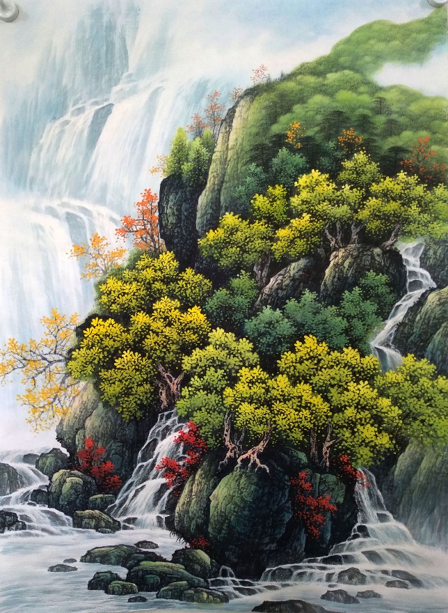 Thank you very much for your message. The painting is beautiful. We are very happy with it. Please thank painter Li Yong Quan for his hard work. We really like the detail of the reflection in the waterfall as well as the nuanced texture of the clouds in the upper right hand corner of the painting.
