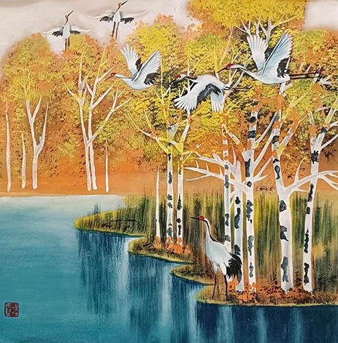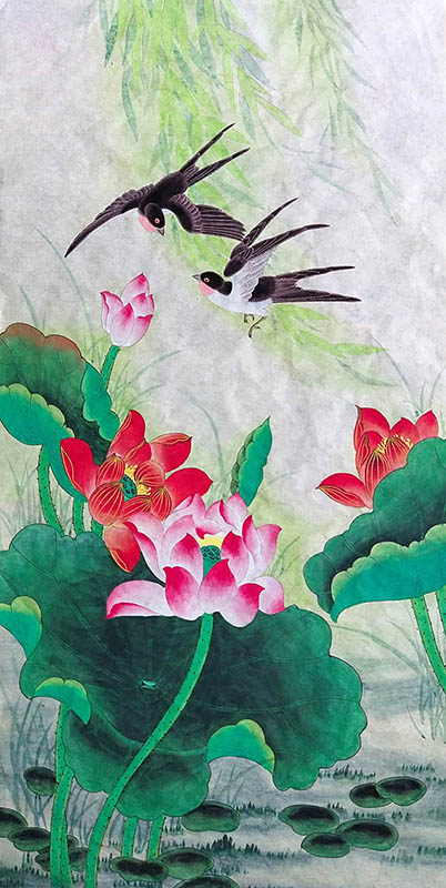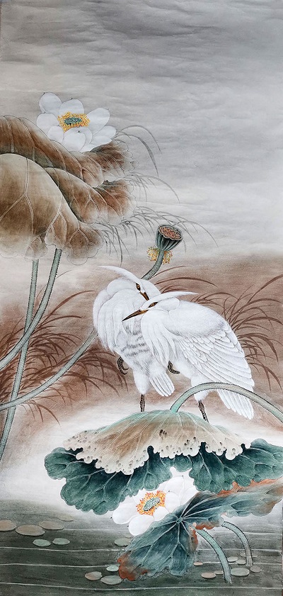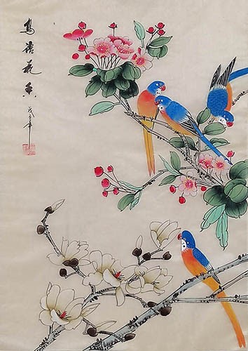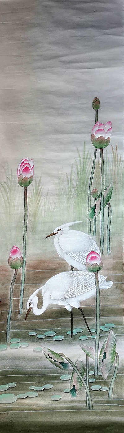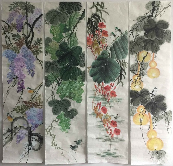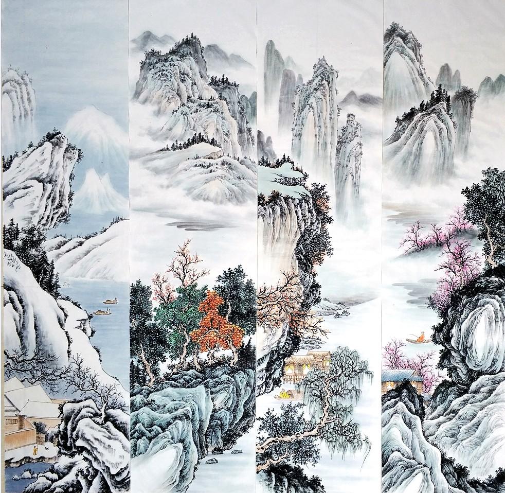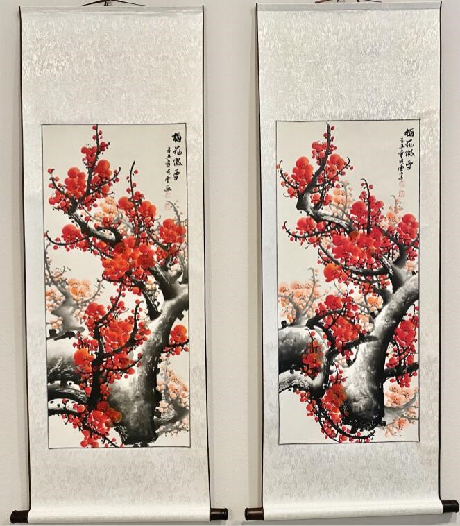 The three paintings arrived yesterday. They are truly magnificent works of art. I love the colors and attention to detail. The scroll design complements the artwork beautifully. Please pass along my gratitude to An Tian and the scroll creators.