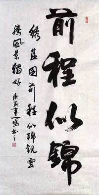 I love the painting! Please thank the artist for me. I would like the artist to sign, stamp and inscribe the painting based on the content of the original picture. Please let me know what the inscription means. Thank you!